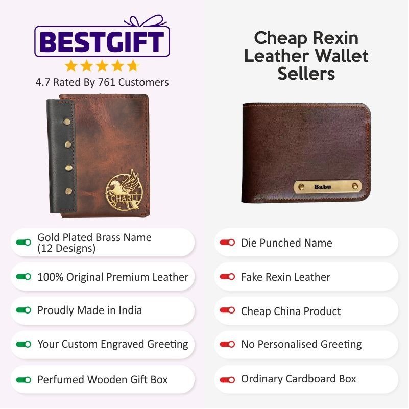 100% Original Leather Customized Wallet with Gold-Plated Brass Name
